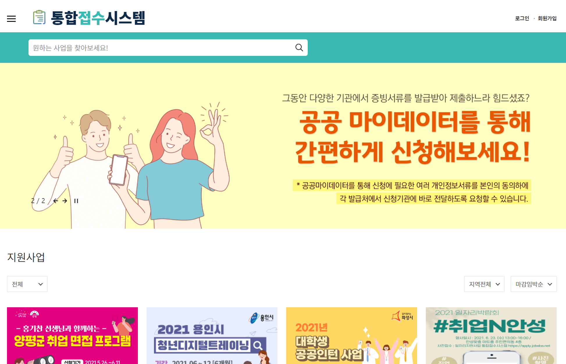 일자리 지원사업 통합접수 시스템 홈페이지 접속하기