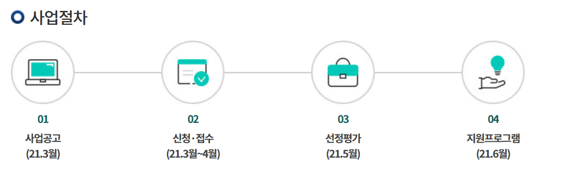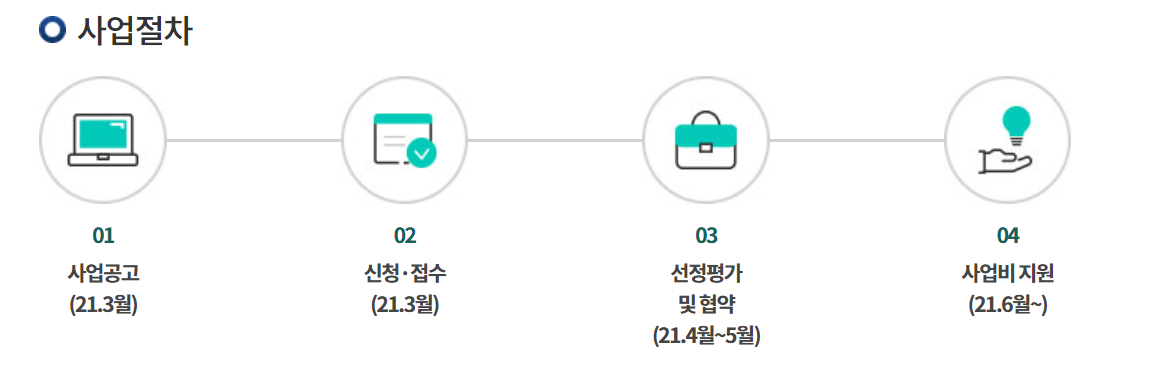 ● 사업공고 : 2021년 2월 17일 ~ 3월 17일 (현재 접수 중)